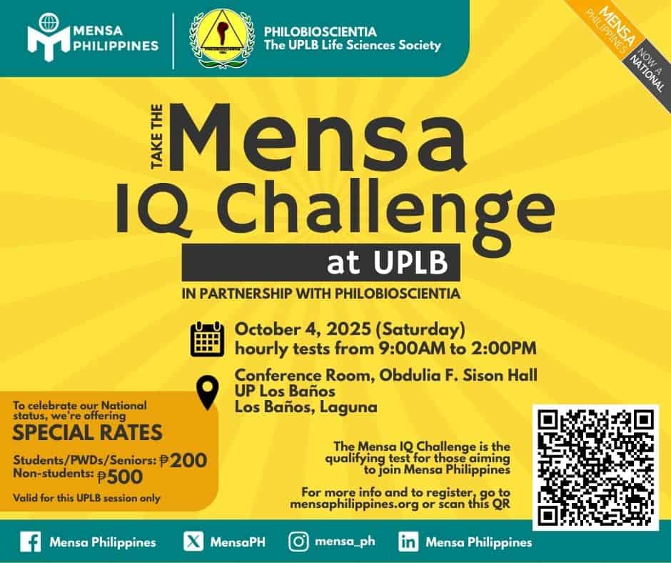 We are kicking off 2025 with a challenge! Take the Mensa IQ Challenge, back by popular demand at the University of the Philippines in Diliman,